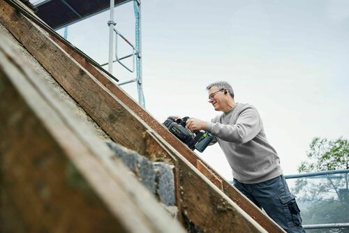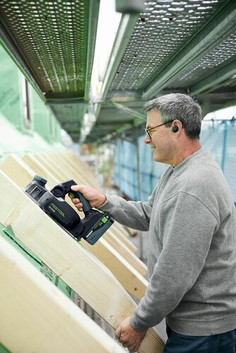 - Dzięki poręcznemu strugowi akumulatorowemu HLC 82 możesz szybko i niezawodnie uzyskać gładką strukturę powierzchni bez widocznych śladów strugania. Oznacza to, że w przyszłości należy zaplanować znacznie mniej czasu na ponowne szlifowanie. Umożliwia to zamontowany pod kątem nóż spiralny, który usuwa drewno, oszczędzając zarówno materiał, jak i narzędzie. Kolejna zaleta: nóż spiralny generuje również dużo mniejszy hałas.